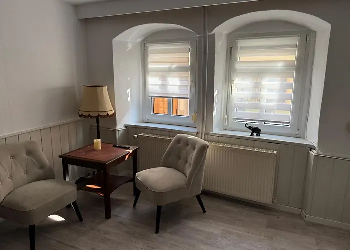 Die 1-Zimmer-Ferienwohnung Mit Garten Und Terrasse, Zentral Und Ruhig liegt etwa 10 Gehminuten vom Schloss Neuenburg sowie dem Friedrich-Ludwig-Jahn-Museum entfernt und bietet Blick auf den Garten. Das 70 m^2 große Apartment verfügt über eine Terrasse mit Blick auf die Berge.